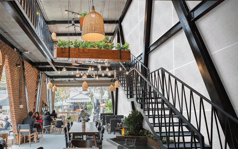 Công trình quán cafe ứng dụng khung nhà thép tiền chế và tấm xi măng